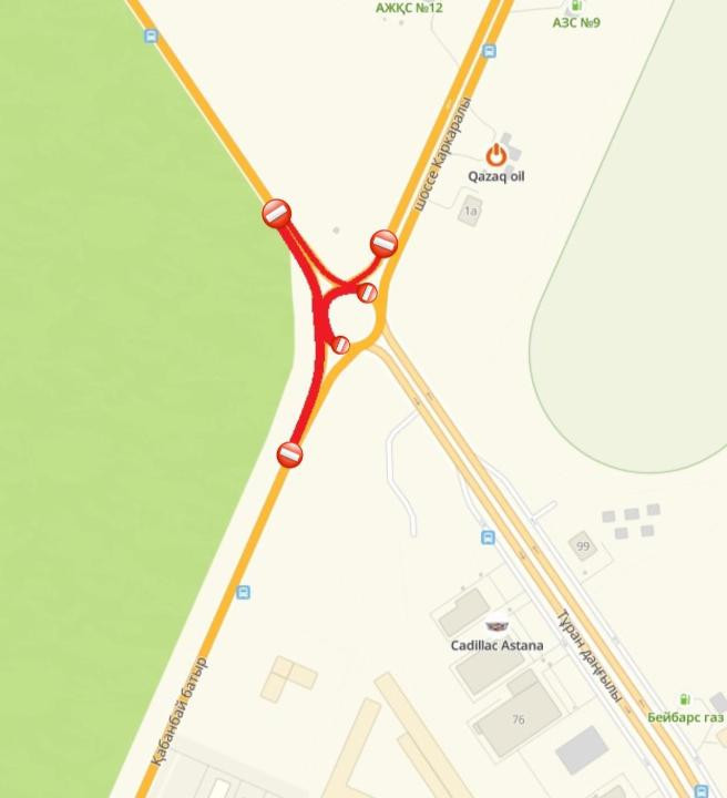- Қабанбай батыр даңғылы Хусейн бен Талал көшесінен "Астана жұлдызы" айналмасына дейін.