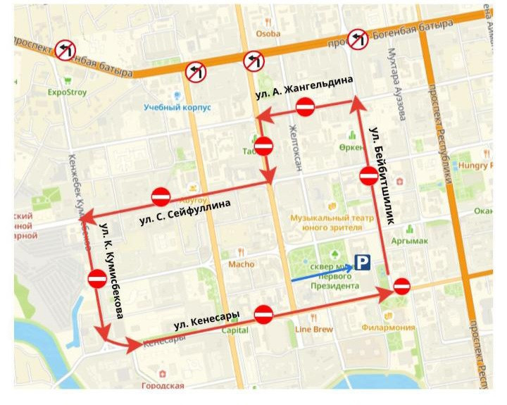 Сонымен, 31 тамыз күні сағат 8:00-ден 10:00-ге дейін төменде көрсетілген көшелер жабылады:
