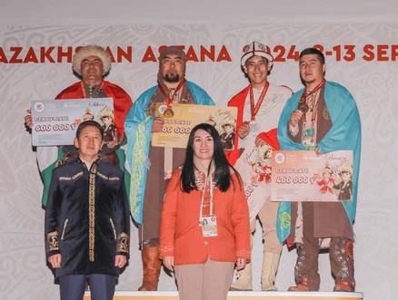 5-ші Дүниежүзілік көшпенділер ойындарының алғашқы жеңімпаздарын ҚР Ұлттық спорт қауымдастығының президенті Исламбек Салжанов медальдармен марапаттады.