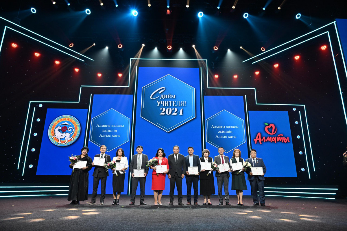 Іс-шара барысында қала басшысы «Алматы ұстазы» байқауының жеңімпаздарын марапаттады. Байқауға 2 мың адам қатысқан, бұл - рекордтық көрсеткіш. Жеңімпаздар қатарында 7 педагог бар: №173 мектеп-лицейдің тарих пәні мұғалімі Ернұр Бейсембаев, №140 мектеп-гимназияның информатика пәні мұғалімі Еркеназ Баймұрат, №92 мамандандырылған лицейдің химия пәні мұғалімі Суннатулла Қауымбаев, №178 мамандандырылған лицейдің биология пәні мұғалімі Айдана Айдарова, №159 гимназияның математика пәні мұғалімі Әзизхан Өміралханов, №70 орта мектептің орыс тілі мен әдебиеті пәнінің мұғалімі Анастасия Благодатская және №12 мамандандырылған мектептің қазақ тілі мен әдебиеті пәні мұғалімі Дулат Сұлтанбек.