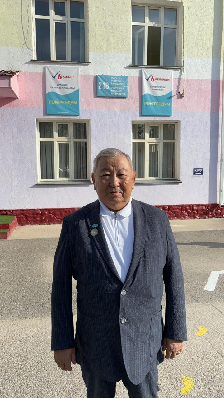 Ал қоғам қайраткері Орынбай Рахманбердиев ел тағдырына жаны ашитын азамат ретінде референдумға белсенді түрде қатысып, өзінің азаматтық ұстанымын білдіруге келгенін айтады.
