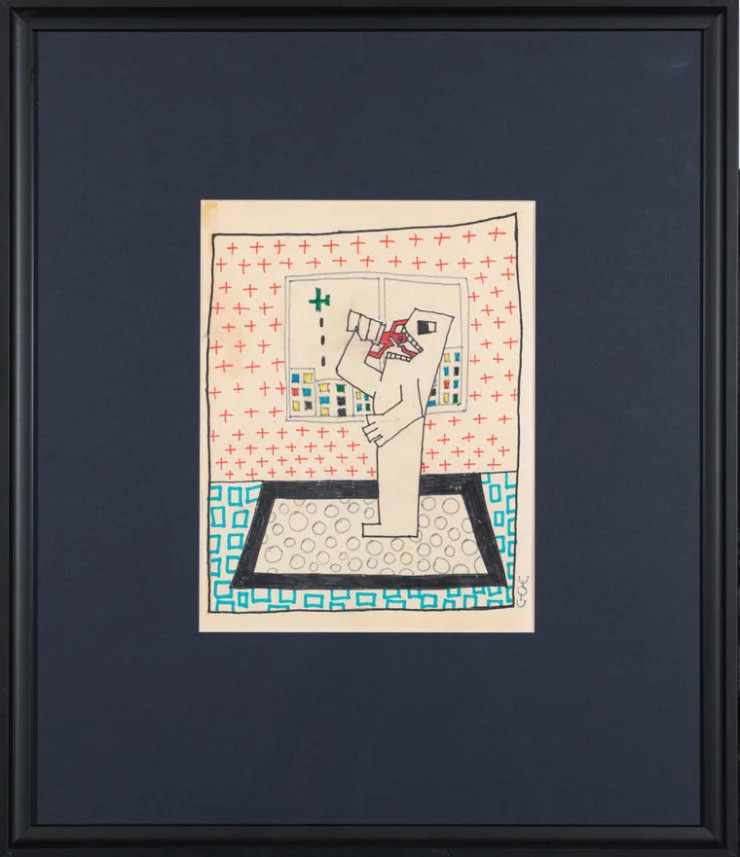 "Жарқын түстерден басқа олардың барлығына ерекше лаконизм мен мәнерлілік тән. Ол қарапайымдылығымен және шынайылығымен балалар шығармашылығын еске түсіреді. Алайда оның жұмыстары "балаларға тән емес" қара әзілге толы. Оның суреттері негізінен махаббат, соғыс және өлім тақырыптарына арналған", – делінген ақпаратта.