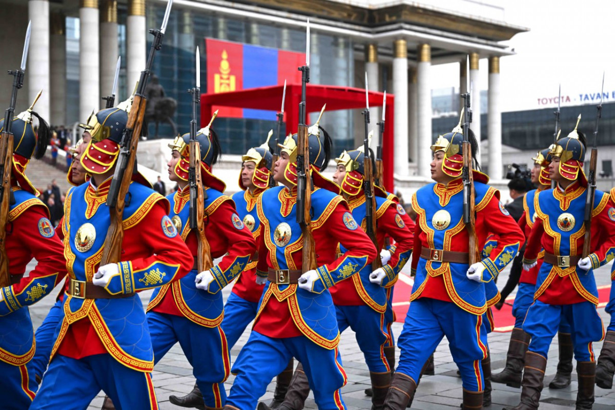 Үкімет үйі алдындағы Сухэ-Батыр алаңында құрмет қарауылы және сауыт киген салт атты моңғол жауынгерлері сап түзеп тұрды. Құрмет қарауылы бастығының рапортынан кейін екі елдің мемлекеттік әнұрандары шырқалды, мемлекеттер басшылары бір-біріне ресми делегация мүшелерін таныстырды.