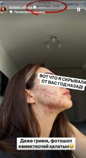 "Бұл жағдайды бір жыл бұрын сіздерден жасырып қалдым. Гримм де, фотошоп та көмектеспеді. Суреттерде бұл бер жағы ғана. Күн сайын көбейе берді. Күнде жылайтынмын. Сол Балжанды қатты құшақтағым келеді. Ешкімнің басына бермесін. Кез келген адамға соққы болары сөзсіз. Көзімде нұр жоқ. Бәрі бетіңді неге шашыңмен жауып аласың" деген сөздер де ауыр тиді", – деп жазды Балжан Бидаш Instagram-да.