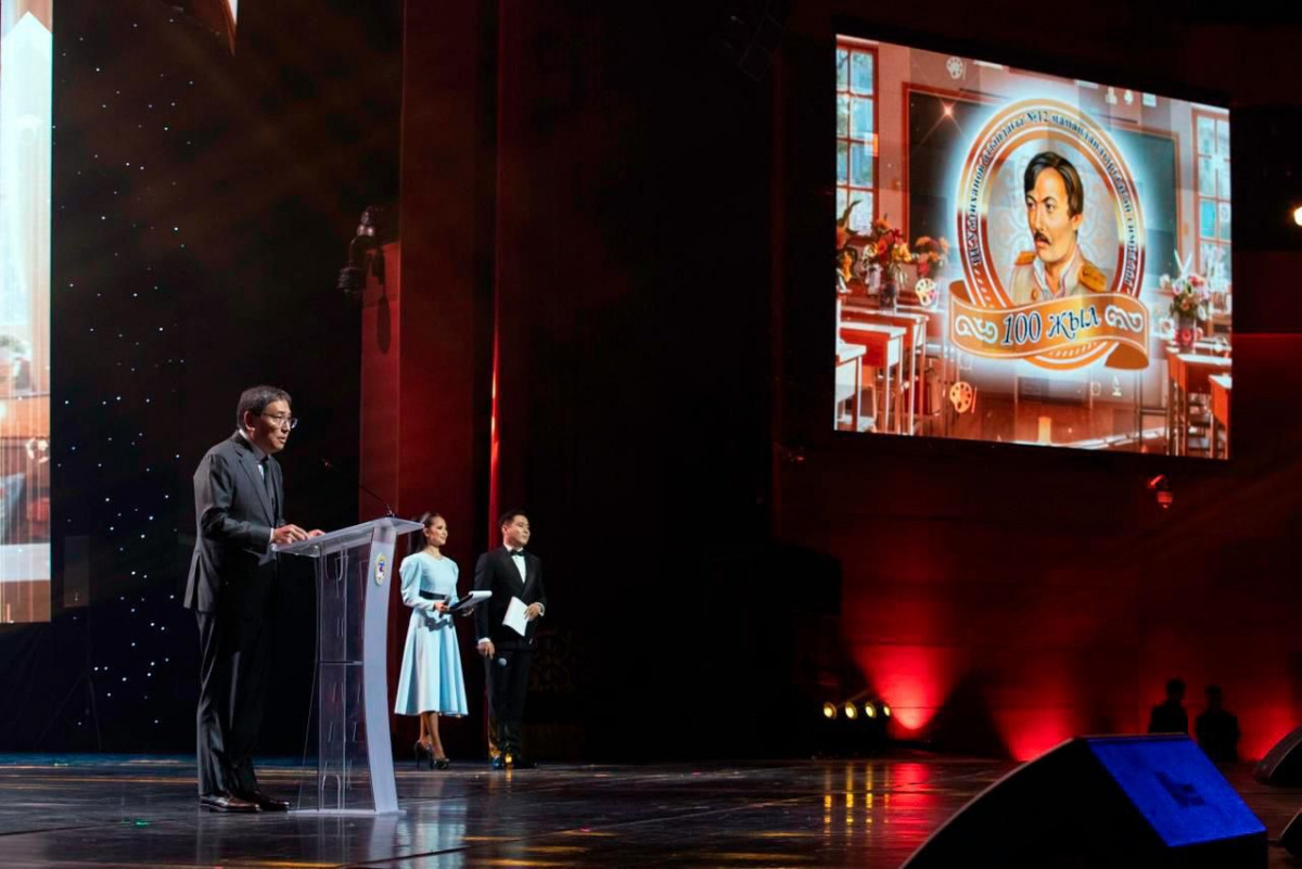Қала басшысы Қазақстан Президенті Қасым-Жомарт Тоқаевтың құттықтау жеделхатын оқып, гимназия ұжымын 100 жылдығымен құттықтады.
