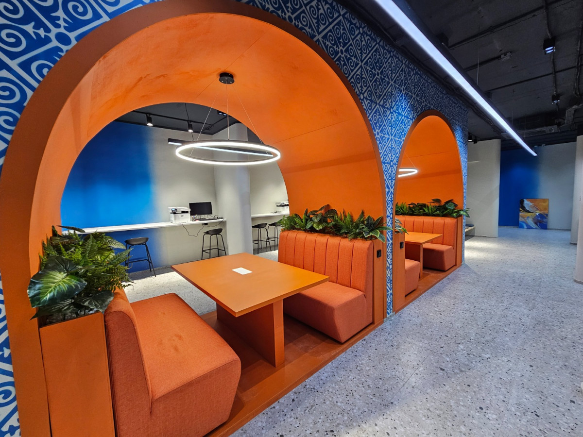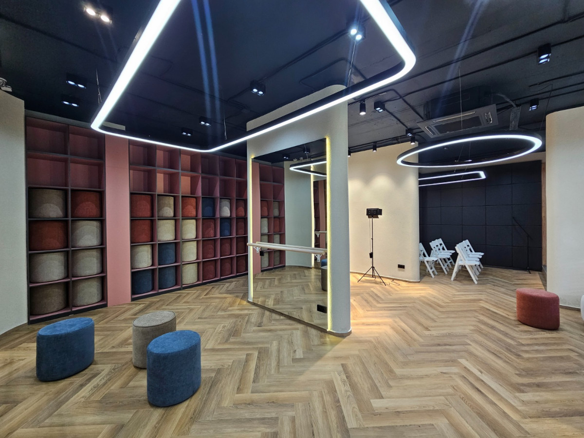 Комьюнити-орталық заманауи стильде безендірілген және бірнеше аймақтарға бөлінген – конференц-зал, психологиялық, заң көмегі, жұмысқа орналасу, кәсіптік бағдар беру, кәсіпкерлік мәселелері бойынша кеңестер, жастар идеяларын жеделдетуге арналған коворкинг-аймақ, ана мен бала бөлмесі.