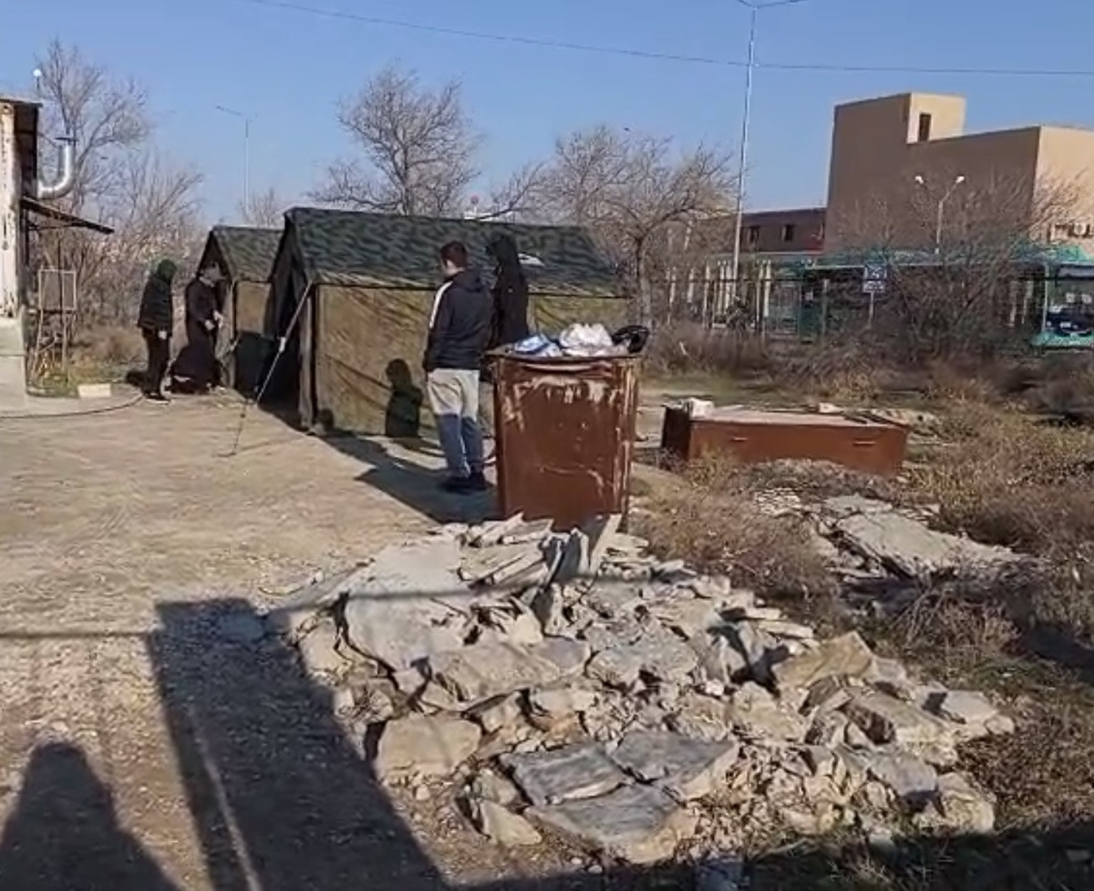 Lada.kz хабарлауынша, шатырлар 1 шағынауданда орналасқан мәйітхана маңында орнатылған. Онда Баку-Грозный рейсінің қайтыс болған жолаушылардың мәйіті жеткізіліп жатыр. Жергілікті әкімшілік мәйітханада орын болмауынан осындай шешім қабылдады.
