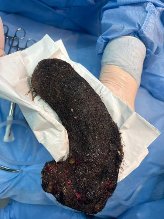 Асқазанда өте үлкен мөлшердегі бөгде заттар анықталған пациент шұғыл түрде Түркістан каласынан Облыстық балалар ауруханасының қабылдау бөліміне жедел жәрдем қызметімен жеткізілген. Сол мезетте асқазанға ЭФГДС процедурасын жасау арқылы бөгде зат анықталып, күрделі ота жасалды. Ота кезінде дәрігерлер бүлдіршіннің асқазанынан ұйысып қалған бір уыс шаш алып шықты. Асқазаннан шыққан шаштың салмағы бір келіге жуық. Ота сәтті өтіп, емделуші бір күннен кейін палатаға ауыстырылған.