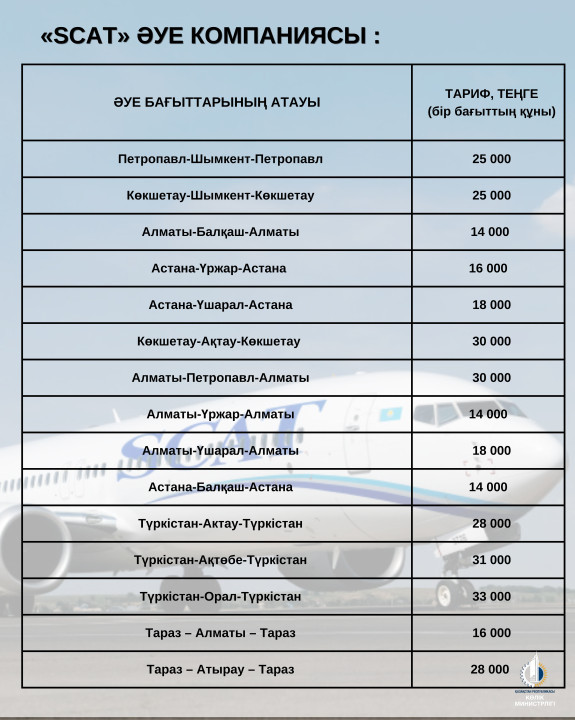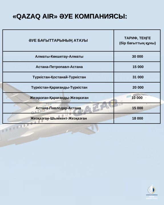 Ел ішіндегі қалалар арасында әуе қатынасын одан әрі дамытып, жолаушылар сұранысын қанағаттандыру үшін 2025 жылы субсидияланатын әуе рейстерін орындайтын әуе компаниялар конкурс нәтижесіне сәйкес айқындалды. Субсидияланатын маршруттар ел тұрғындарына қолжетімді бағамен саяхаттауға мүмкіндік беріп қана қоймай, ішкі әуе нарығының дамуын қамтамасыз етпек.