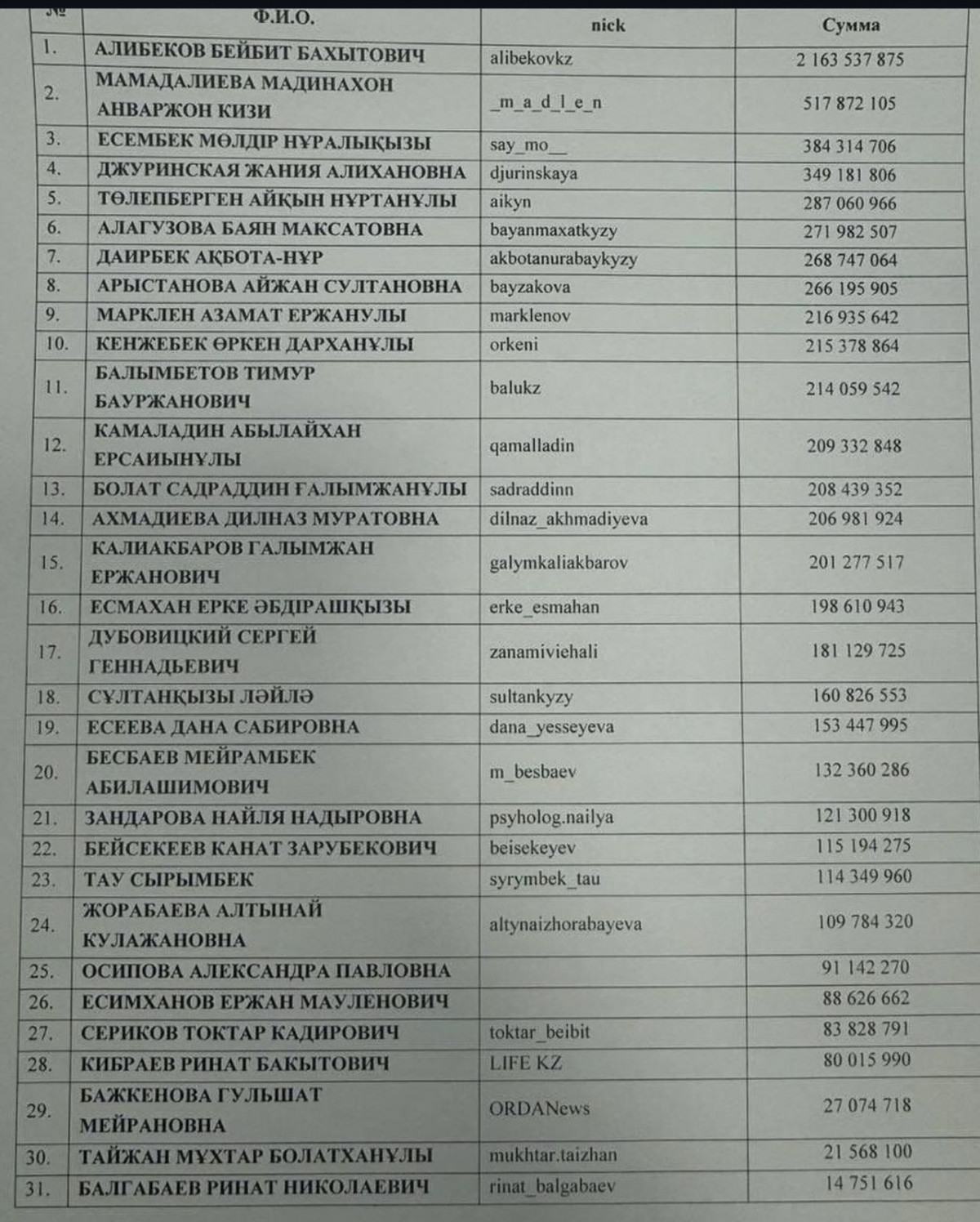 Естеріңізге сала кетейік, бұған дейін Aikyn.kz Блогерлер салық төлей ме? деген ақпарат жариялаған болатын. Ақпаратқа сәйкес, салық декларацияларының мәліметтерімен салыстыру қорытындысы бойынша, 594 тұлғаға 53,3 млрд теңгеге сәйкессіздіктер белгіленіп, «кірістерді төмендету» бұзушылықтары бойынша камералдық бақылау хабарламалары жіберілген. Бұл салық туралы хабарламаны көптеген танымал тұлғалар мен блогерлер алған, нәтижесінде бұл тақырып қызу талқыға түсіп, әлеуметтік желіде салық төлеушілер тізімі де тараған.