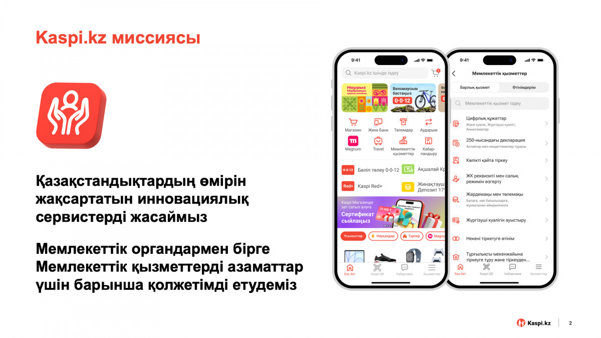 «Kaspi.kz миссиясы – қазақстандықтардың өмірін жақсартатын инновациялық сервистерді жасау. Осы миссия аясында біз мемлекеттік органдармен бірге мемлекеттік қызметтерді азаматтар үшін барынша қолжетімді жасаудамыз. Біздің ең үлкен жетістіктеріміздің бірі – Kaspi.kz қосымшасындағы «Мемлекеттік қызметтер» сервисіне ай сайын 10 миллионнан астам адам кіреді», – деді Михаил Ломтадзе.