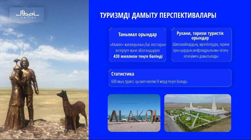 Биыл Қабанбай ауылындағы Алакөл жағалауын абаттандыру мен туристік аймақтың бас жоспарын өзгертуге 430 млн теңге бөлінді. Сонымен қатар өңірдің тарихи, мәдени нысандарының инфрақұрылымы кезең-кезеңімен дамытылады. Олардың қатарында Барлық-Арасан шипажайы, Абайдың Жидебай-Бөрілі музейі, Қоңыр-Әулие үңгірі, Қозы Көрпеш – Баян Сұлу ескерткіші, Бесқарағайдағы Тұзды көл, Киелі бұлақ, Ырғызбай, Баянбай ата кесенелері және Елеке сазы қорғандары бар.