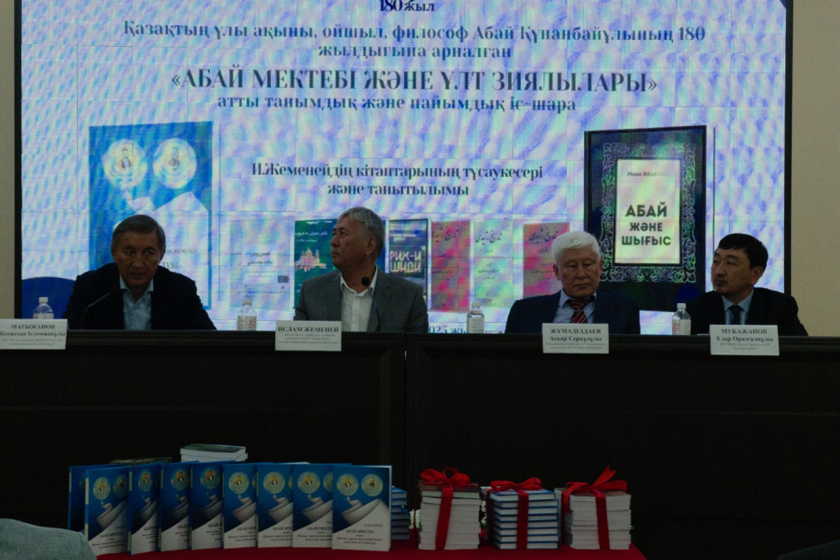 Іс-шара аясында ҚР мәдениет қайраткері, профессор Ислам Жеменейдің бірқатар ғылыми еңбектерінің тұсаукесері өтті. Атап айтқанда, парсы тілінде жазылған қазақ тарихы, әдебиеті, мәдениеті мен тіліне арналған зерттеулері, қазақ тіліндегі «Абай және Шығыс» монографиясы, сондай-ақ өзбек тілінде жарық көрген «Әмір Темірдің саяси қызметі мен жорықтары» еңбегі көпшілікке таныстырылды.