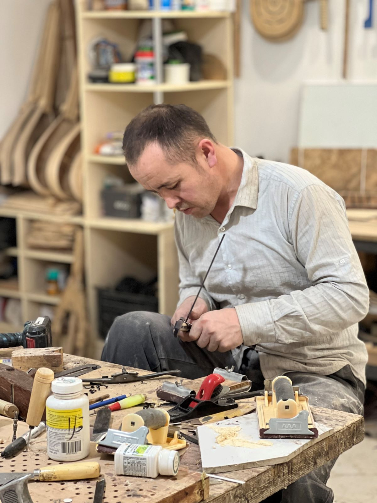 – Әрине, тапсырыс берушінің ниеті мен сенімі тапсырыстың қалай шығатынына тікелей әсер етеді. Оған талай көзіміз жетті. Мысалы, домбыраларымызға елге танымал өнерпаздар мен тұлғалар да жиі тапсырыс береді. Сондай-ақ шеберге барынша сенім артқан дұрыс дер едім. Өйткені аспаптың сапалы шығуы үшін сол сәттегі шебердің көңіл күйі аса маңызды. Кез келген сапалы дүние байыппен, баппен жасалады. Кейде тапсырыс берушілер, қымбат әрі ұзақ уақытты талап ететін бұйымға тез арада қол жеткізуге асығады. Мұндай жағдайда домбыра да кем-кетіксіз болады деп айта алмаймын. Әрі шектен тыс саудаласып, қол еңбегінің құнын түсіретіндер де аз емес.