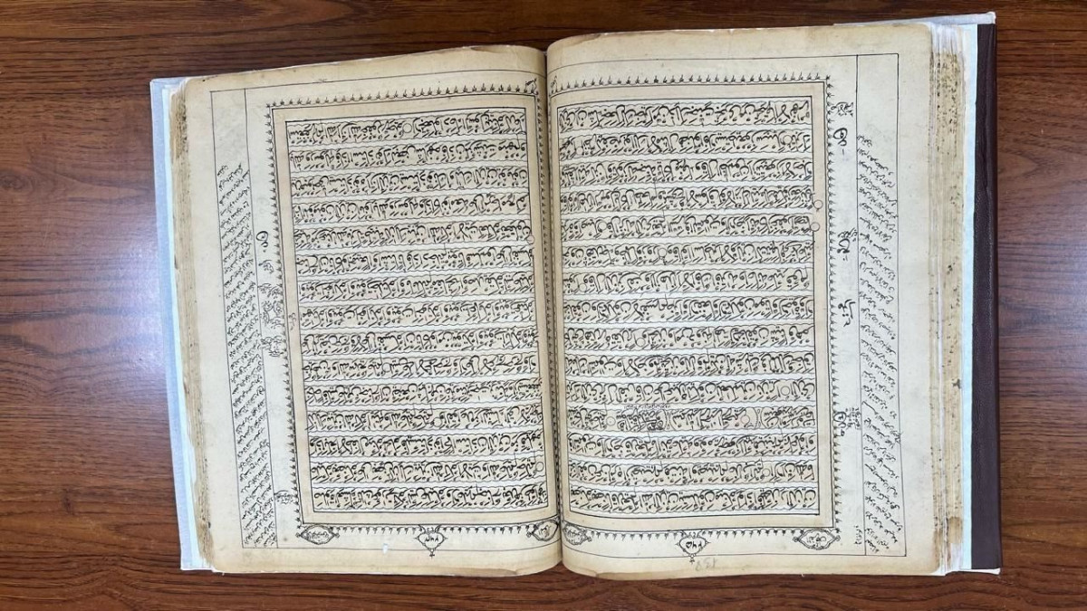 Исі мұсылманның мол мұрасы қатарын толықтырған көне Құран нұсқасы кітапхананың сирек кітаптар қорында ұзақ жылдар бойына сақталған көрінеді. Кітапхананың негізгі қорларды сақтау бөлімінің меңгерушісі Гүлдерайым Қосназарованың айтуынша, құнды жәдігер һижра жыл санауы бойынша 1293 жылы, ал қазіргі жыл санауына сәйкес 1876 жылға тиесілі.