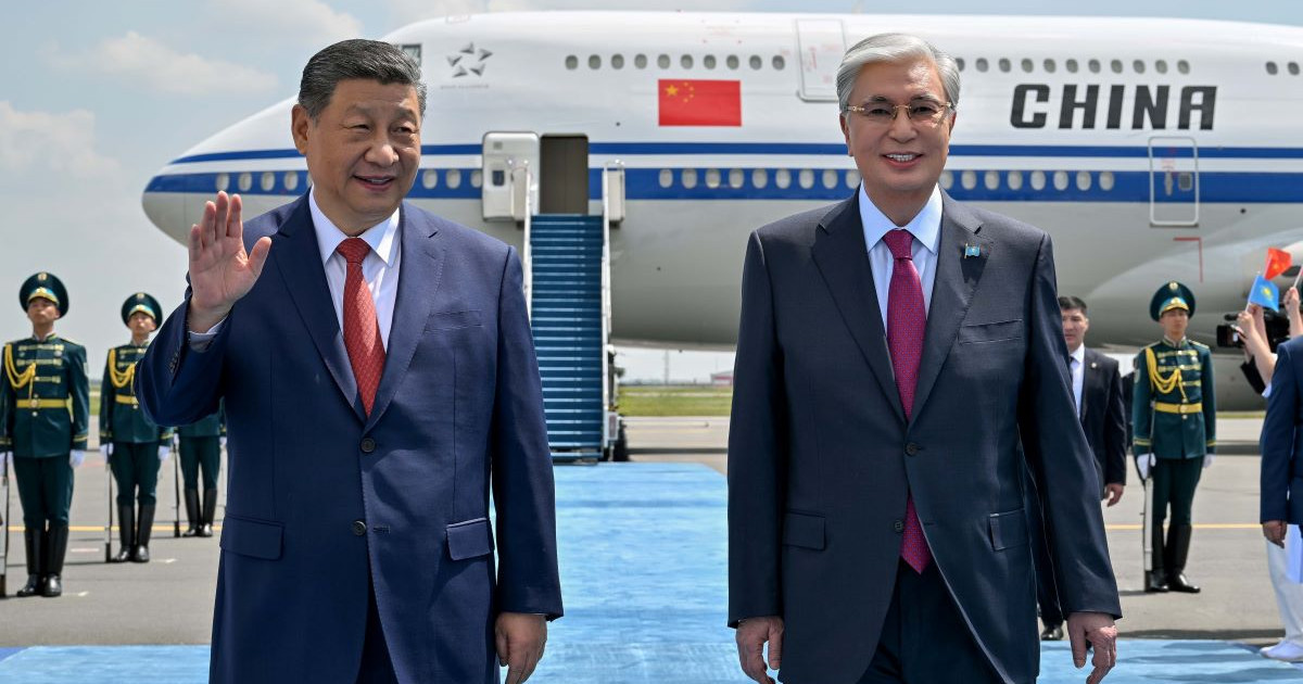 Президент Қасым-Жомарт Тоқаев Қытай Халық Республикасының Төрағасы Си Цзиньпинді Астана әуежайынан қарсы алды. Трапта Құрмет қарауылының ротасы сап түзеді. Мәртебелі мейманға Қазақстан мен Қытай туларын ұстаған жеткіншектер қошемет көрсетті.
