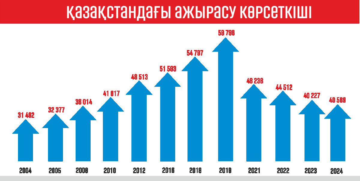 – Сонымен біз ажырасу жағынан әлемдегі лидерлерге жатпаймыз. Тіпті, Уикипедияның өзінде дәлірек ақпарат берілген. Ресми дерек бойынша ажырасу коэффицентінің рекорды 2019 жылы орнаған – мың адамға шаққанда 3,23 ажырасу. Бірақ 2020 жылдан бері төмендеу байқалады, 2022 жылғы ресми дерек бойынша бұл коэффициент 2,27 құраған, – дейді әлеуметтанушы.