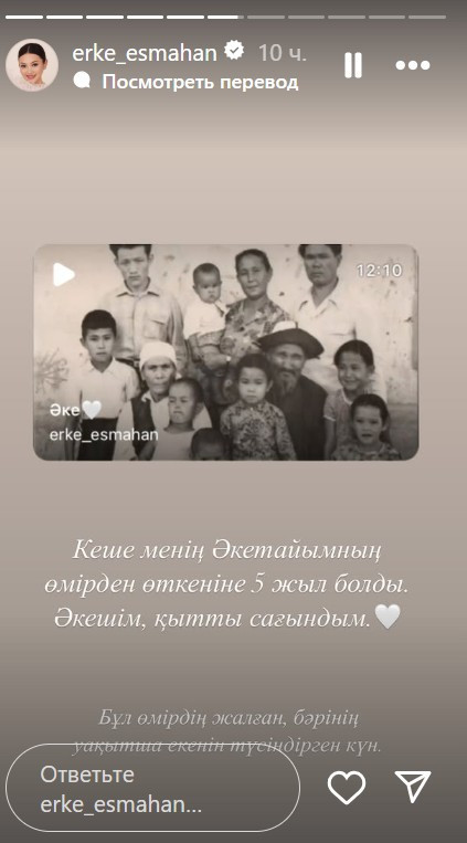 «Кеше менің Әкетайымның өмірден өткеніне бес жыл болды. Әкешім, қатты сағындым. Бұл өмірдің жалған, бәрінің уақытша екенін түсіндірген күн», - деп жазды әнші.