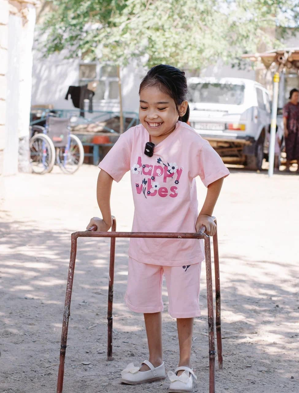 Осы жобаның арқасында алғаш рет өздігінен жүре бастаған балалардың бірі – Аружан. Ол туғанынан бастап тік жатпай, тек жартылай отырған қалпы өмір сүрген. Қарапайым жүріп-тұрудың өзі арман еді. Аружан – ауылдағы көпбалалы отбасының қызы. Әкесі мектепте күзетші, анасы – жұмыс істемейді.