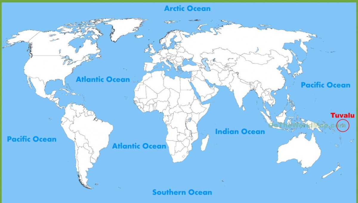 Теңіз деңгейінің өсу қарқыны сақталса, 2050 жылға қарай Тувалу су астында қалуы мүмкін. Карта ontheworldmap.com сайтына алынды
