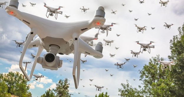 Аспандағы құжынаған дрондар қазіргі соғыстарда үлкен қатерге айналуда. Фото builtin.com сайтынан алынды. Авторлығы: Shutterstock / Andy Deal Photograph