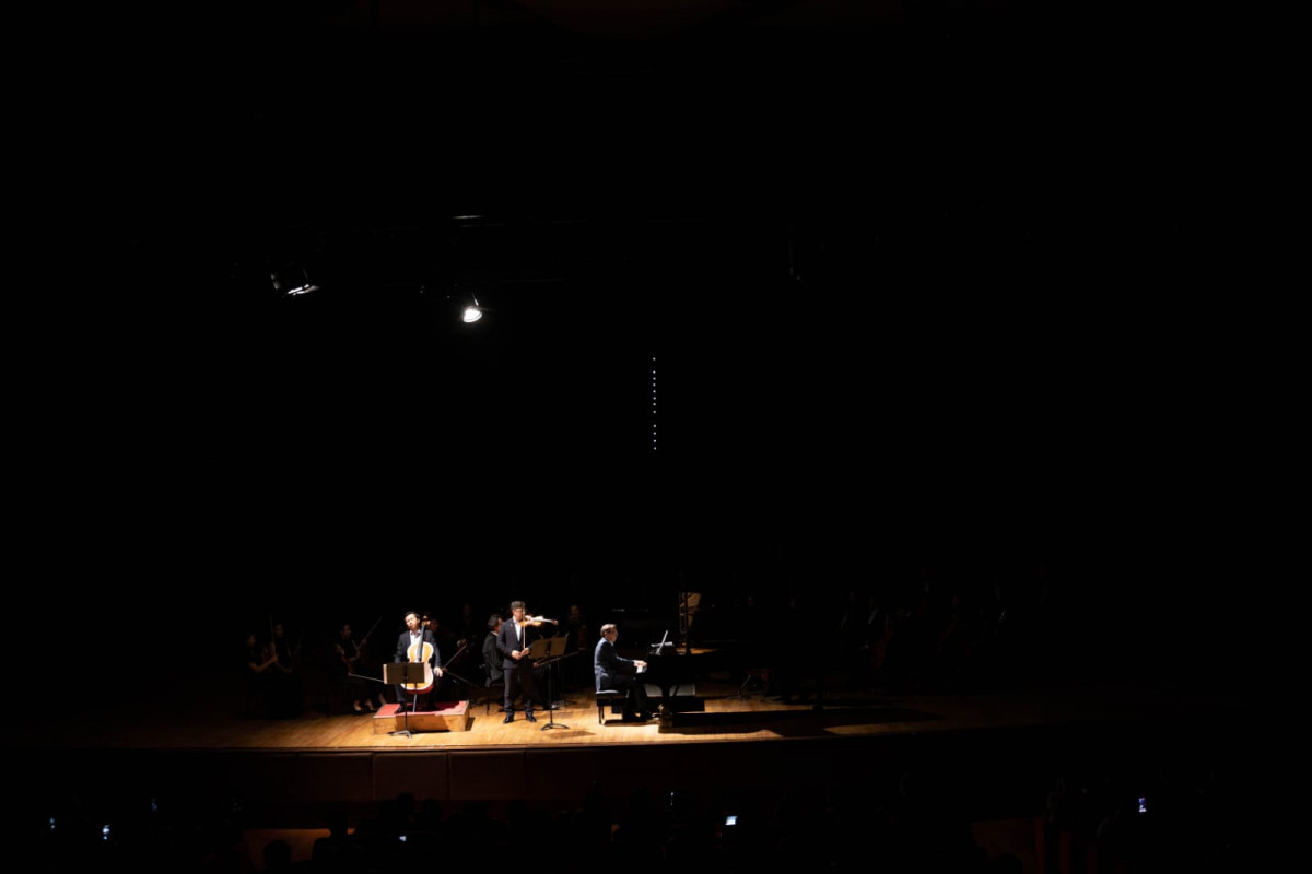 Шығарманы FORTE TRIO мемлекеттік триосы мен Қазақ мемлекеттік симфониялық оркестрі орындады. Классикалық музыканың сүйемелдеуі Аустриядан арнайы шақырылған маэстро Мария Бенюмованың дирижерлігімен өтті.