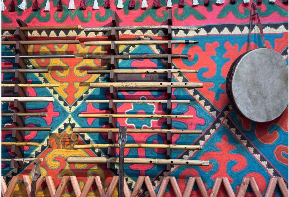 Әртүрлі әдіспен безендірілген аспаптардың арасында марокколық бонго, тәжіктің дойрасы, өзбектің карнайы да бар. Оның бәрін музей қызметкерлері сол елдерден арнайы алып келген. Ал қазақ ұлттық аспаптарының ішінде домбыраның де түр-түрі бар. Атап айтқанда, тұмар домбыра, қалақ домбыра, тіпті Абай Құнанбайұлының, Құрманғазы Сағырбайұлының, Біржан салдың, Ақан серінің, Қаныш Сәтбаевтың домбыраларының көшірмесі қойылған.