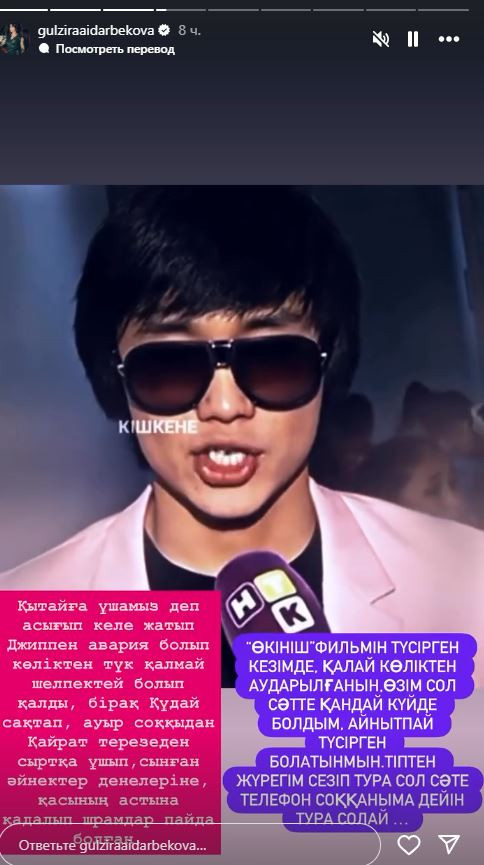Продюсер Гүлзира Айдарбекова осыдан бірнеше жыл бұрын жол апатына түскен сәтті еске алды, – деп жазды Aikyn.kz.