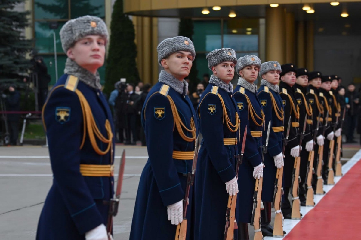 Внуково-2 әуежайында мәртебелі мейманның келуіне орай Мәскеу гарнизонының құрмет қарауылы мен әскери үрмелі оркестрі сап түзеді.