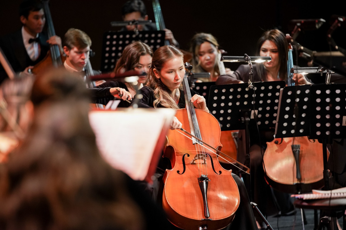 Бұл кеште еуропалық музыканың үш ұлы шебері – Клод Дебюсси, Жан Сибелиус және Сезар Франктың шығармалары орындалады. Дебюссидің нәзік әрі мөлдір «Шағын сюитасы» концерттің прологына айналады: оның бояуы қанық әуезі мен нәзік үндестігі француз импрессионизмінің жеңіл, әсем, поэтикалық атмосферасына бөлейді. Одан кейін академиялық музыка тарихындағы ең мәнерлі әрі драмалық концерттердің бірі – Сибелиустың Скрипкаға арналған ре минор концерті орындалады. Бұл шығарма мұз қатқан солтүстік лирикасын жарып өткен жалын іспетті, ал виртуоздық пассаждар терең, тәубеге келтірер иірімдермен қатар өрілгендей. Солист Қаламқас Жұмабаева осы музыканың күрделі, қуатты сипатын ашып, әрбір әуен үзіндісін эмоционалды көңіл толқынына айналдырады.