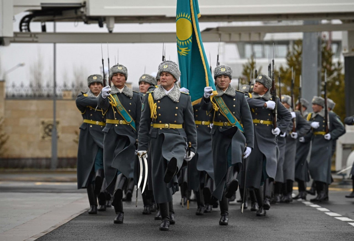 Астана халықаралық әуежайында мәртебелі мейманның келуіне орай Құрмет қарауылы сап түзеді.