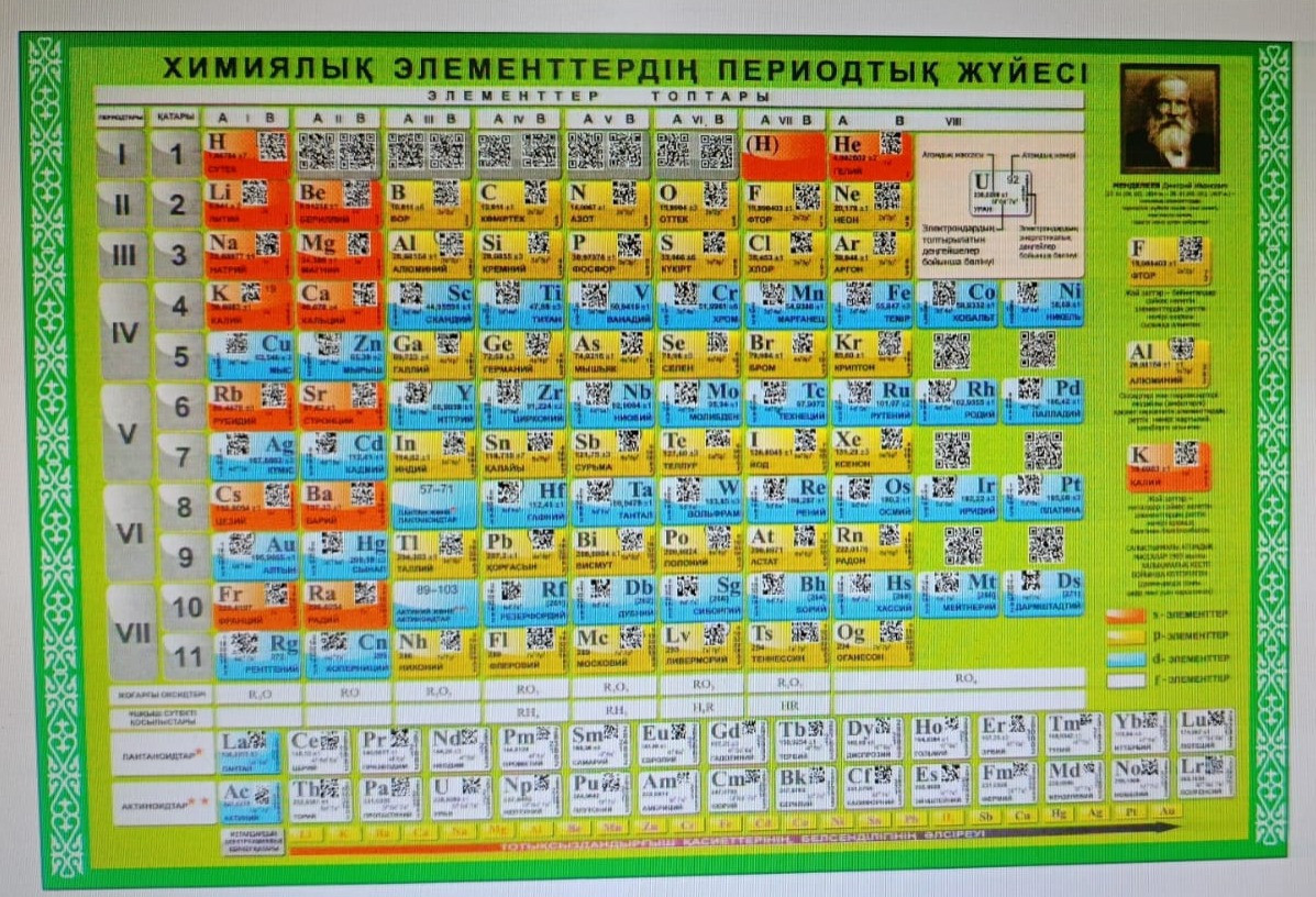 Бүгінде білім беру жүйесі қарқынды түрде цифрлық форматқа көшіп жатыр. Оқыту үдерісінде ақпараттық-коммуникациялық технологияларды пайдалану – оқушының пәнге деген қызығушылығын арттырудың маңызды жолдарының бірі. Химия пәні – табиғат құбылыстарын терең түсінуді қажет ететін күрделі ғылым. Сондықтан пәнді оқыту барысында заманауи әдістерді қолдану ерекше нәтиже береді. Түркістан облысы Төлеби ауданы №2 Ш.Уәлиханов атындағы жалпы білім беретін орта мектеп КММ мұғалімі Бекмұрат Сарыбаев QR-код технологиясын Менделеевтің периодтық кестесімен біріктіріп, оқу сапасын арттыратын тиімді инновациялық жобаны іске асырды, – деп хабарлайды Aikyn.kz.