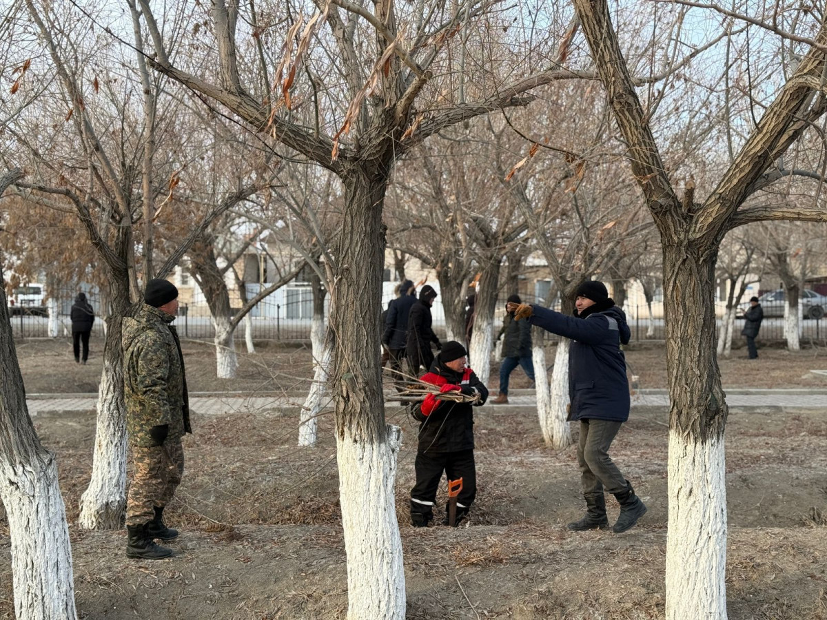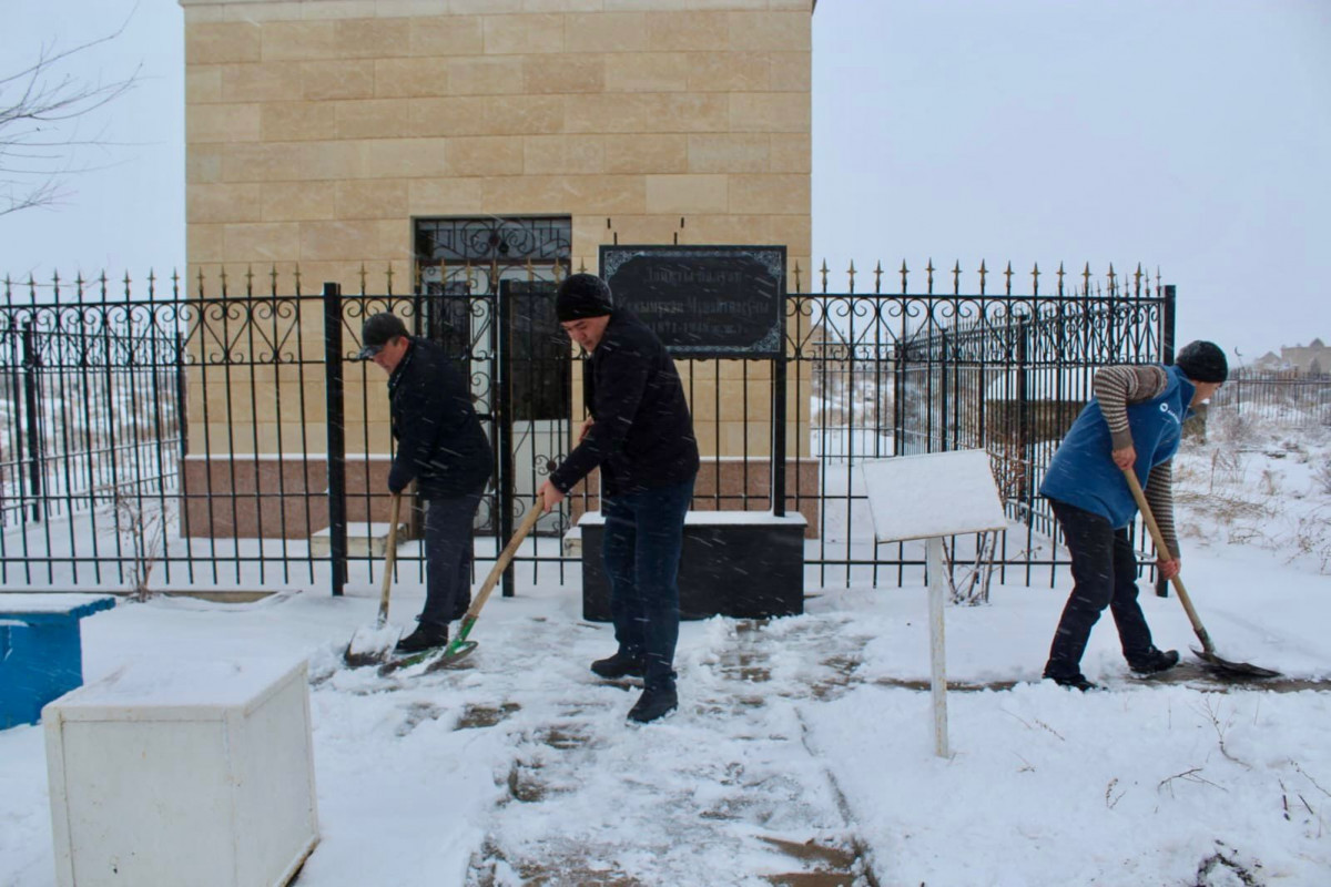 Ұлытау облысының Сәтпаев қаласында «Таза Қазақстан» жобасы аясында қатысушылар Бабыр би аллеясын қардан тазалады.