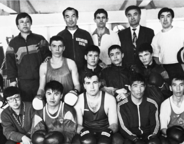 Бокстан ұлттық құрама. Ортада Василий Жиров пен Болат Жұмаділов тұр.