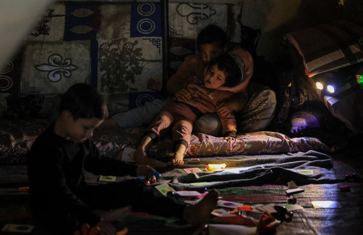 22 наурыз күні Бейруттағы Камиль Шамун атындағы стадион аумағында балалар шатыр ішінде демалып отыр. Бұл аумақ «Хезболла» мен Израиль арасындағы қақтығыс ушыққаннан кейін уақытша қоныс аударғандар лагері ретінде пайдаланылып жатыр. REUTERS/Yara Nardi.