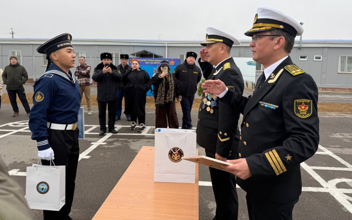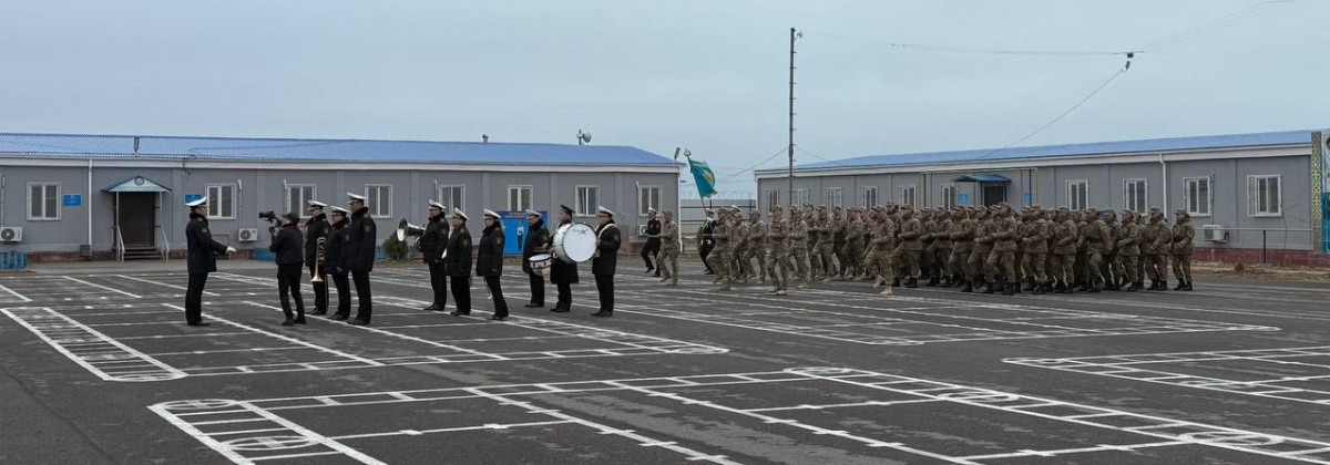 Десанттық шабуылдау батальонында мерзімді қызметін өтеген әскери теңізшілердің Жауынгерлік тумен қоштасу салтанатты іс-шарасына қатысты.