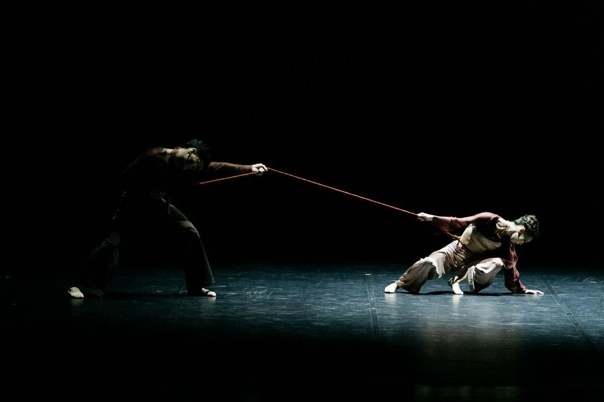 – Спектакльдің басқа да ұтымды тұсы өте көп. Мәселен, екінші дуэтте қос ғашықтың қарым-қатынасындағы нәзік сәттер жіңішке жіп арқылы беріледі. Кейін олардың арасында түсініспеушіліктер пайда болғанда жіп арқанға айналады. Бірінші және екінші дуэттердің көздері таспа жіппен байлануы арадағы кемшіліктердің байқалмағанын білдіреді. Ал кейін олар көзіндегі байлаулы матаны шешкенде белдегі арқанды көріп, арада тайталас басталады, – деді қоюшы хореограф Сұлтанбек Ғұмар.