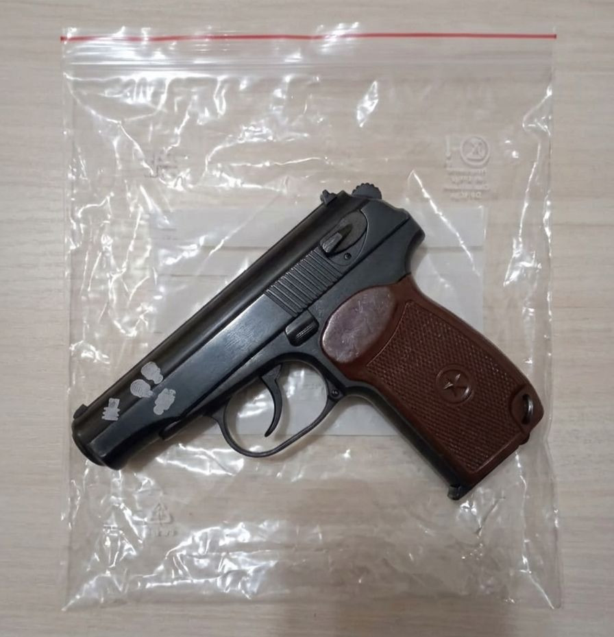 Тексеру барысында оның жанынан пневматикалық тапанша табылып, тәркіленді. Анықталғандай, ол бұған дейін аспанға оқ атып, қоғамдық тыныштықты бұзған.
