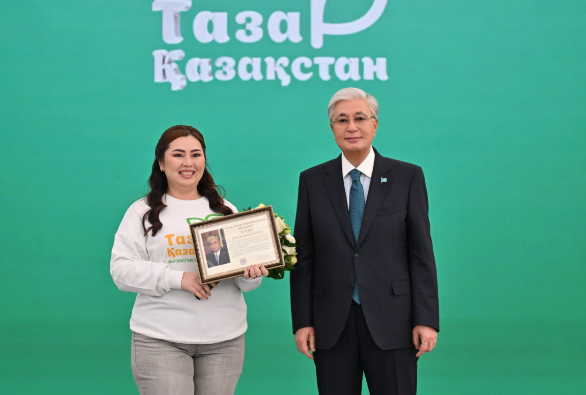Артынан Мемлекет басшысы «Таза Қазақстан» акциясына белсене қатысып, Отан алдындағы адалдығын нақты ісімен көрсеткен бір топ азаматты марапаттады.