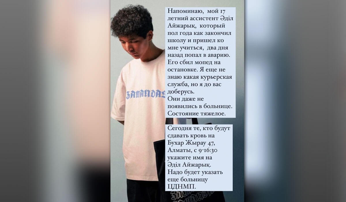 "Қан құю керек": Алматыда мотоцикл қаққан жас режиссер жансақтау бөлімінде жатыр
